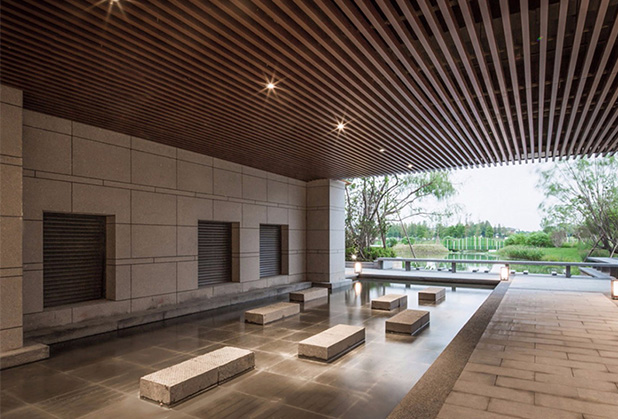 把铝方通扣进龙骨。龙骨是按设计要求的间距为准定制的,安装时只需要把铝方通扣进龙骨相应的齿里就行。